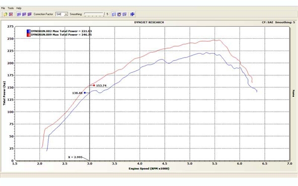 (Please note: Dyno graphs are comparisons of factory stock SPEED6 versus SPEED6 with cp-e™Cat Back system, there were no other performance modifications to the test car.)